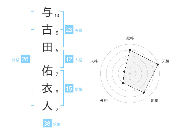 与古田 佑衣人さんを姓名の画数から五運を鑑定