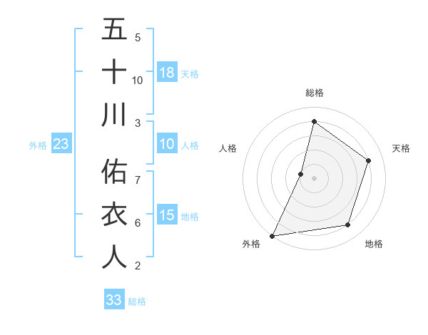 五十川 佑衣人さんを姓名の画数から五運を鑑定