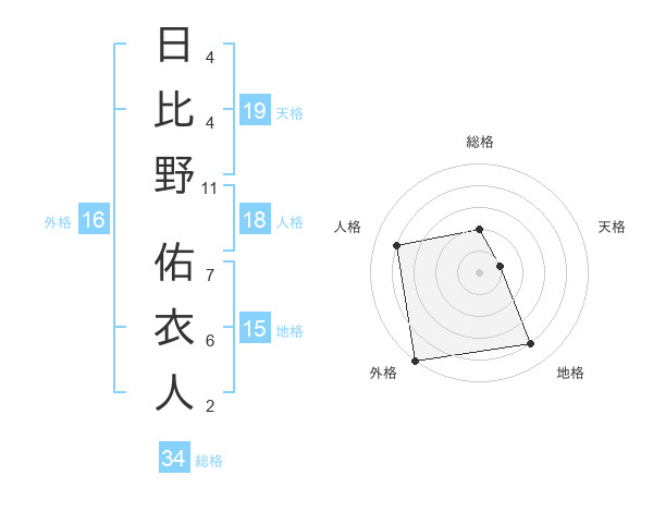 日比野 佑衣人さんを姓名の画数から五運を鑑定
