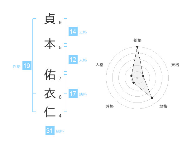 貞本 佑衣仁さんの総格は31画の5点!