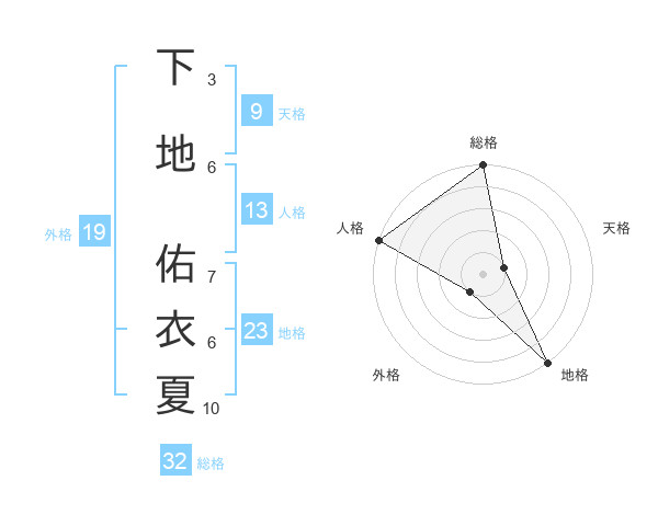 下地 佑衣夏さんを姓名の画数から五運を鑑定