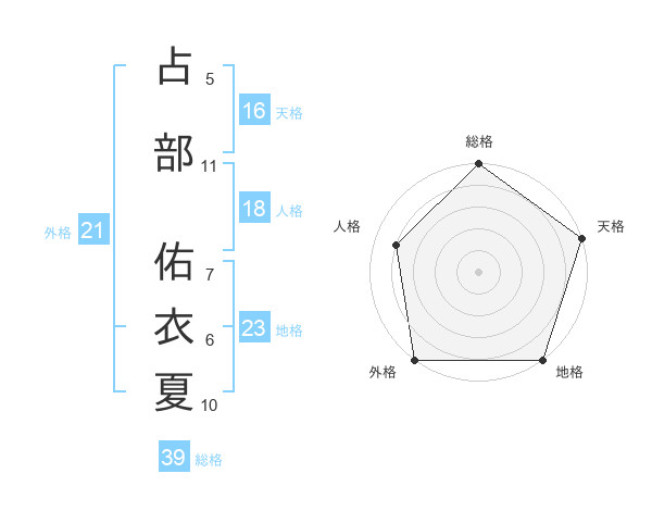 占部 佑衣夏さんを姓名の画数から五運を鑑定