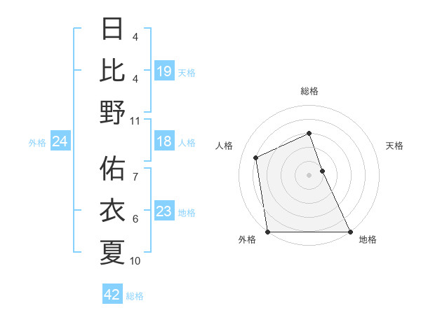 日比野 佑衣夏さんを姓名の画数から五運を鑑定