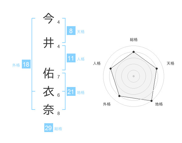 今井 佑衣奈さんを姓名の画数から五運を鑑定