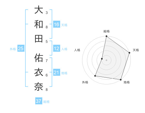 大和田 佑衣奈さんを姓名の画数から五運を鑑定
