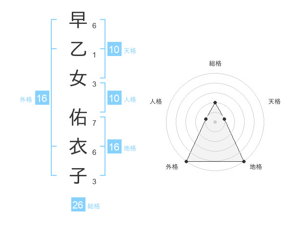 早乙女 佑衣子さんの総格は26画の2点!