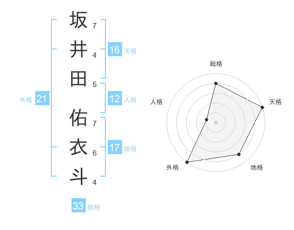坂井田 佑衣斗さんを姓名の画数から五運を鑑定