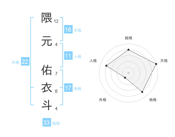 隈元 佑衣斗さんを姓名の画数から五運を鑑定