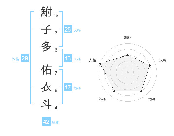 鮒子多 佑衣斗さんの総格は42画の3点!