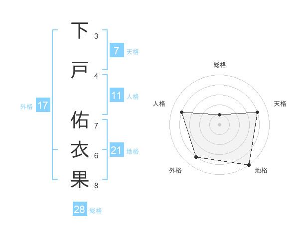 下戸 佑衣果さんの外格は17画の4点!