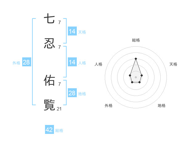七忍 佑覧さんを姓名の画数から五運を鑑定