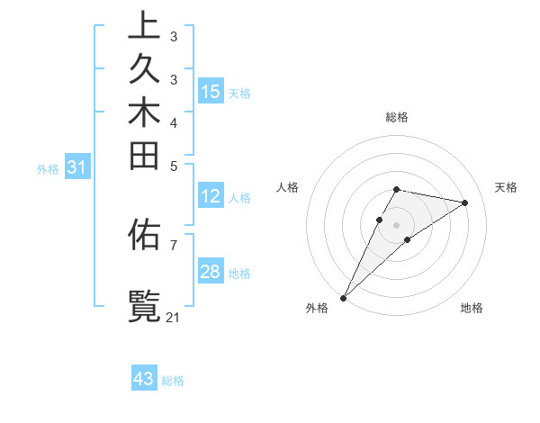 上久木田 佑覧さんを姓名の画数から五運を鑑定