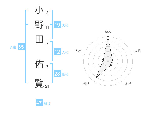 小野田 佑覧さんの総格は47画の5点!