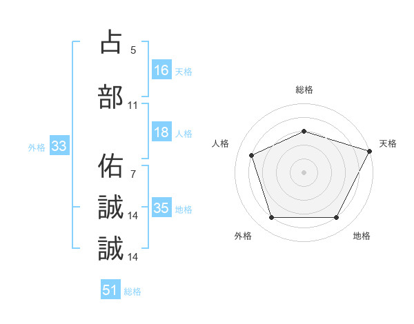 占部 佑誠誠さんを姓名の画数から五運を鑑定