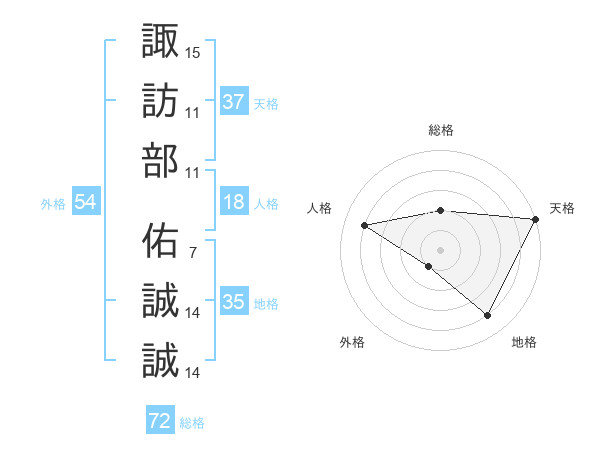 諏訪部 佑誠誠さんの天格は37画の5点!