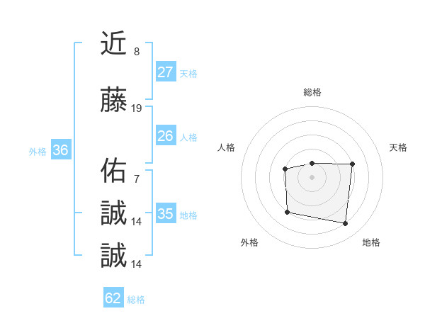 近藤 佑誠誠さんを姓名の画数から五運を鑑定