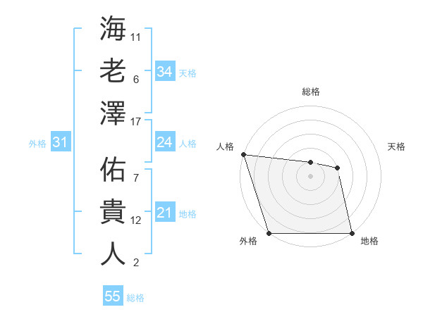 海老澤 佑貴人さんの外格は31画の5点!