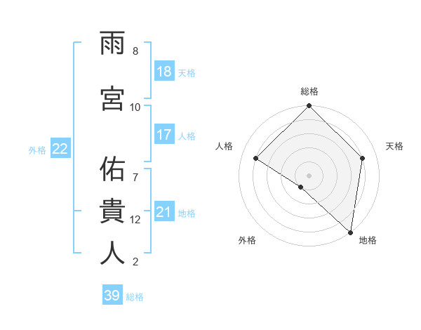 雨宮 佑貴人さんを姓名の画数から五運を鑑定