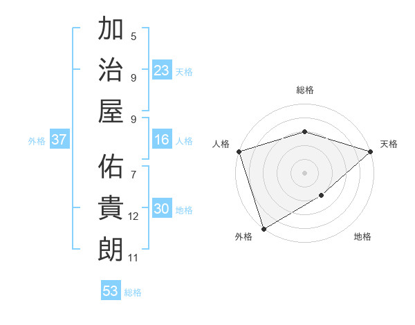 加治屋 佑貴朗さんの総格は53画の3点!