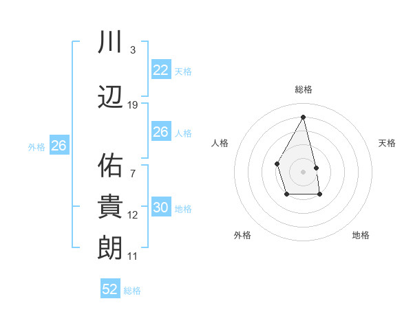 川辺 佑貴朗さんを姓名の画数から五運を鑑定