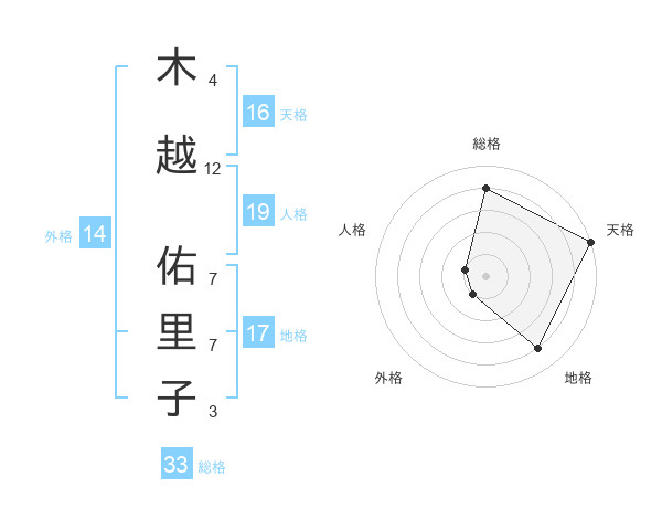 木越 佑里子さんの天格は16画の5点!
