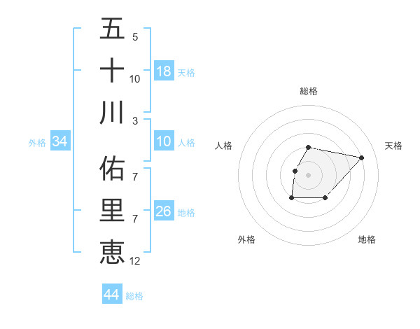 五十川 佑里恵さんを姓名の画数から五運を鑑定