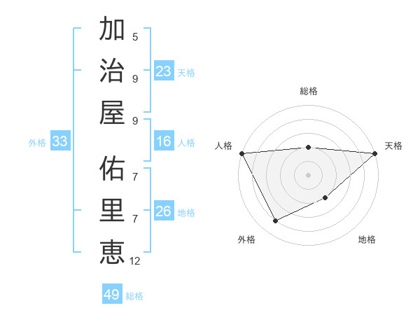 加治屋 佑里恵さんの天格は23画の5点!