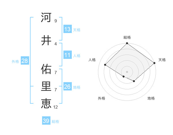 河井 佑里恵さんを姓名の画数から五運を鑑定