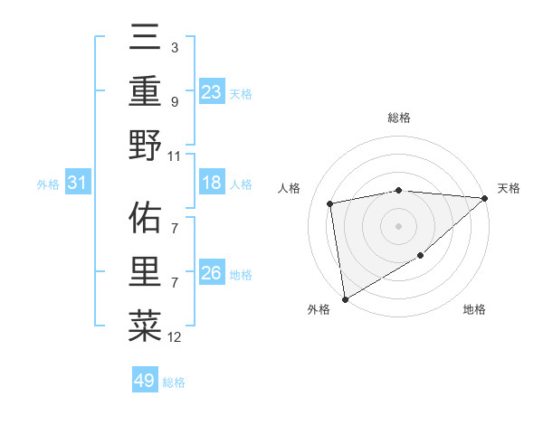 三重野 佑里菜さんの外格は31画の5点!