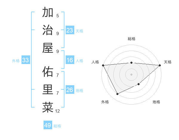 加治屋 佑里菜さんの天格は23画の5点!