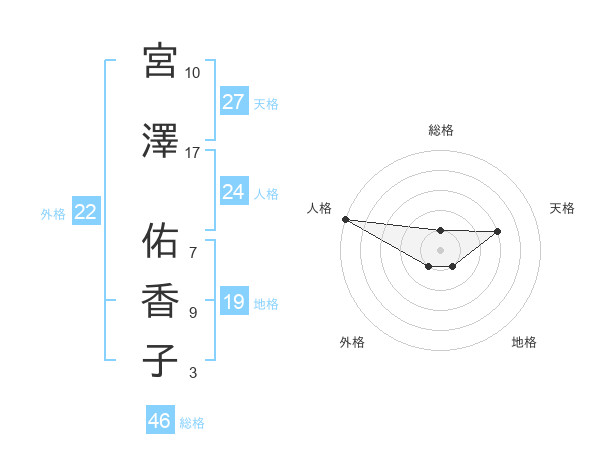宮澤 佑香子さんを姓名の画数から五運を鑑定