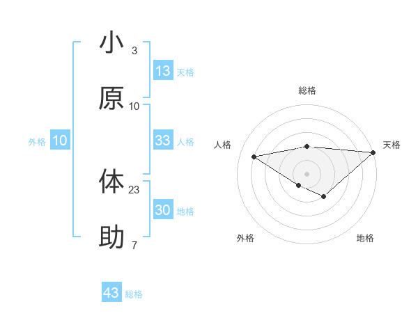 小原 体助さんの天格は13画の5点!