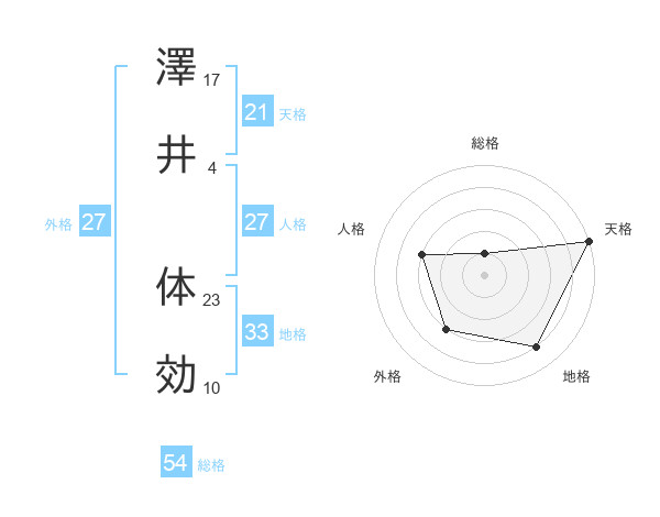 澤井 体効さんの天格は21画の5点!