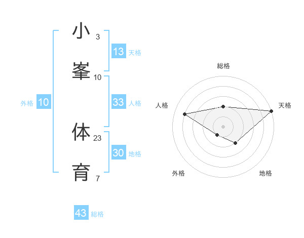 小峯 体育さんの天格は13画の5点!