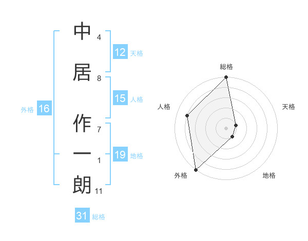 中居 作一朗さんの総格は31画の5点!