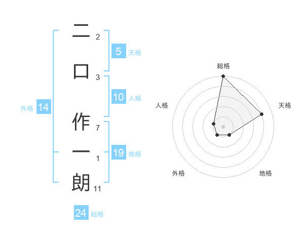 二口 作一朗さんを姓名の画数から五運を鑑定