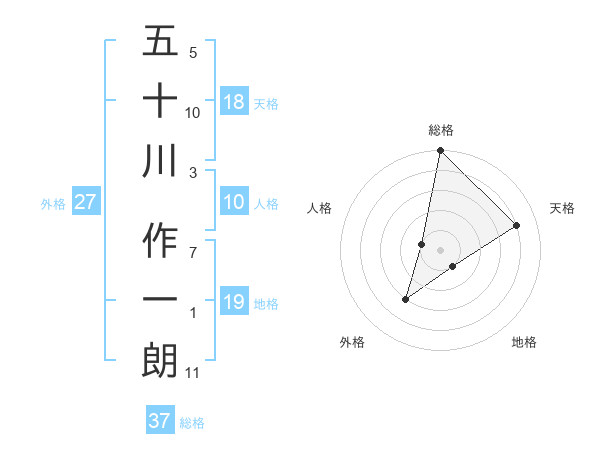 五十川 作一朗さんを姓名の画数から五運を鑑定