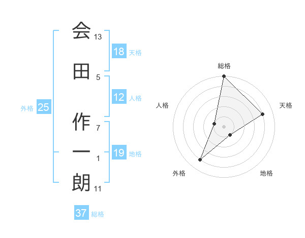 会田 作一朗さんを姓名の画数から五運を鑑定