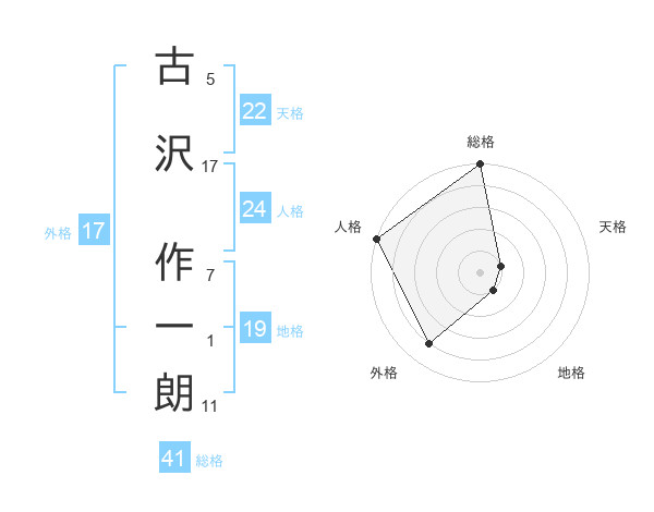 古沢 作一朗さんの総格は41画の5点!