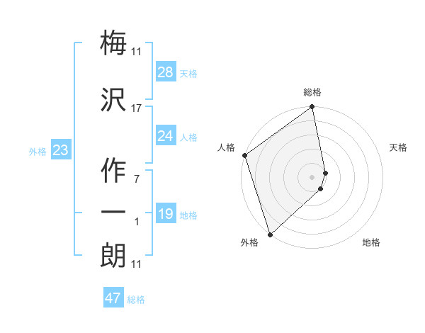 梅沢 作一朗さんを姓名の画数から五運を鑑定