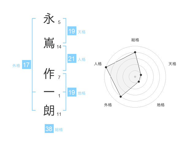 永嶌 作一朗さんを姓名の画数から五運を鑑定