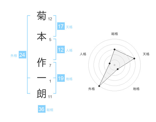 菊本 作一朗さんを姓名の画数から五運を鑑定