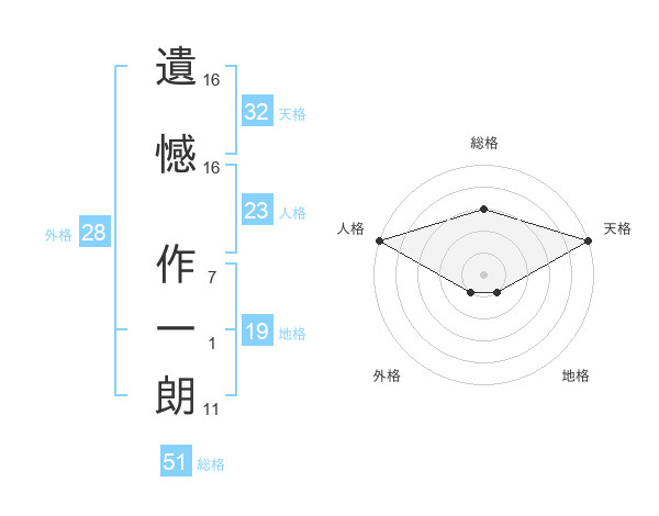 遺憾 作一朗さんを姓名の画数から五運を鑑定