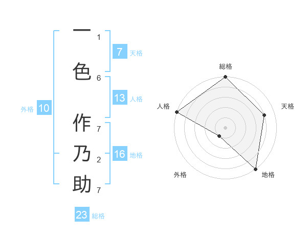 一色 作乃助さんを姓名の画数から五運を鑑定