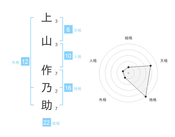 上山 作乃助さんの地格は16画の5点!
