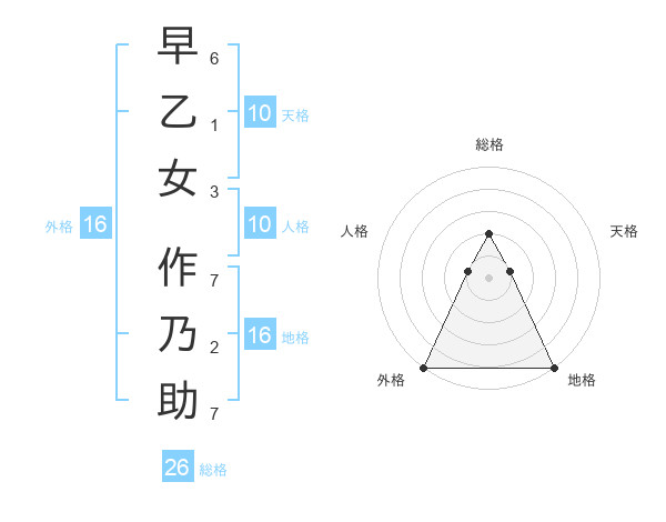 早乙女 作乃助さんを姓名の画数から五運を鑑定
