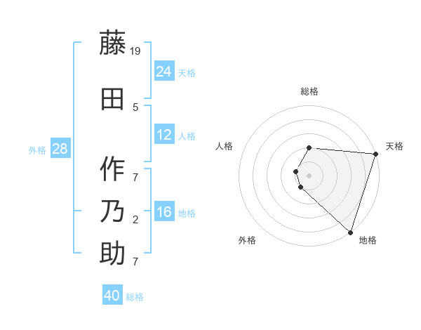 藤田 作乃助さんを姓名の画数から五運を鑑定