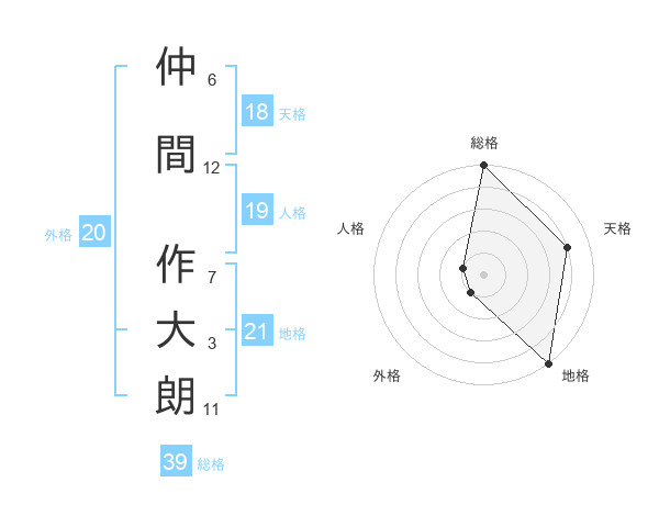 仲間 作大朗さんを姓名の画数から五運を鑑定