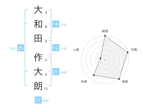 大和田 作大朗さんを姓名の画数から五運を鑑定
