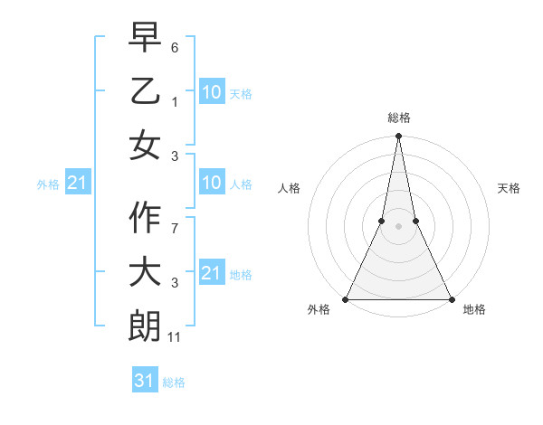 早乙女 作大朗さんを姓名の画数から五運を鑑定